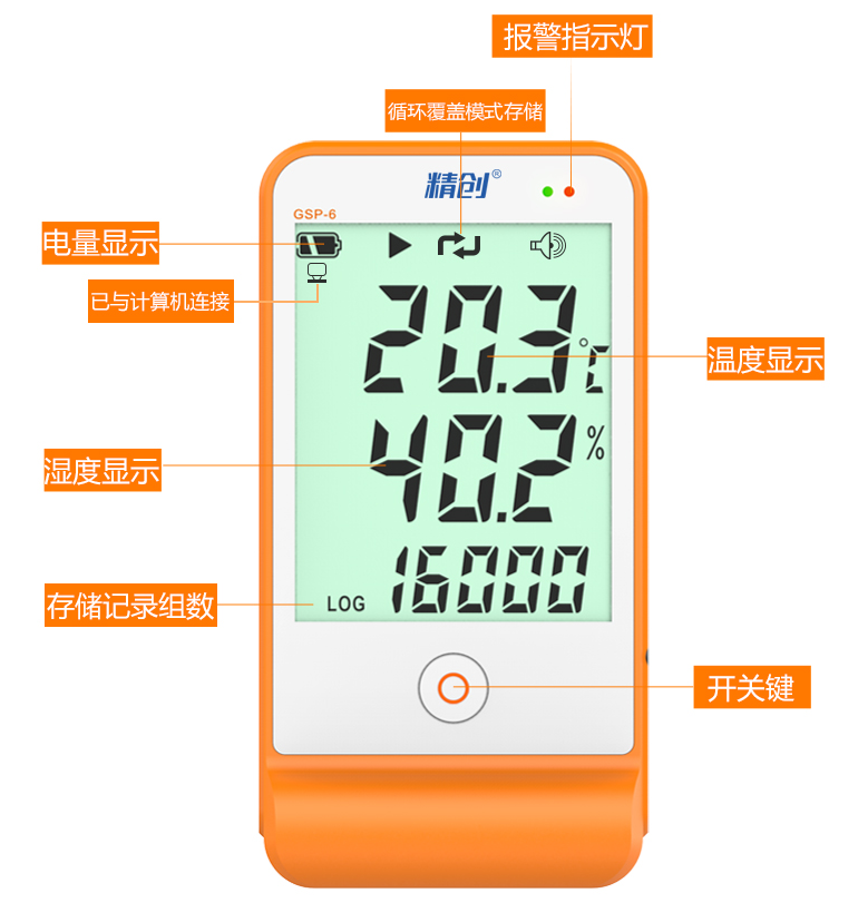 GSP-6温湿度记录仪gsp认证高精度温度计usb冷藏冷链运输;免值守,随处装,扫码连,更安全;超温报警,安全保障;搭载高性能基站定位,通过云平台电子地图实时跟踪物流运输位置。适用于各类冷库、冷藏车、各类仓库、大棚种植、养殖孵化、生产车间、高档食品;浆疫苗等医疗用途